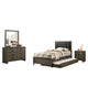 Meli 4pc Twin Size Bed Set with Dresser, Dark Gray Solid Wood Frame