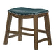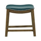 Miel 20 Inch Dining Stool, Green Faux Leather, Brown Solid Wood, Nailheads By Casagear Home