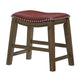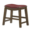 Miel 20 Inch Dining Stool, Red Faux Leather, Brown Solid Wood, Nailheads By Casagear Home