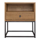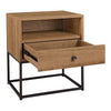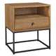 Description:Artfully crafted with premium composite wood and laminate, this nightstand is embellished in a rich natural brown finish with even tones of replicated oak grain. One smooth gliding drawer and a shelf are designed to perfection, offering an excellent place for keeping your belongings while the metal frame base adds class and sophistication to any bedroom. Check out our Mila collection for more.