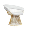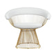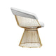 Description:Our Mimi accent chair exudes modern elegance with its sleek design and attention to detail. Crafted from durable metal and finished in pristine gold, it adds a touch of sophistication to any space. The white vegan faux leather upholstery enhances its aesthetic appeal and offers a cruelty-free alternative while its slatted frame provides a dynamic look. Check out our Mimi collection for more.