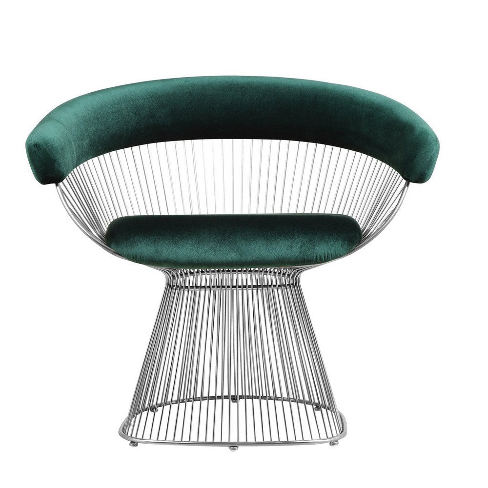 Mimi 27 Inch Accent Armchair, Green Velvet, Foam Cushions, Steel Wire By Casagear Home