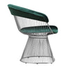 • Green velvet upholstery on top rail of the backrest and seat