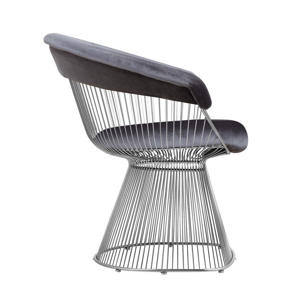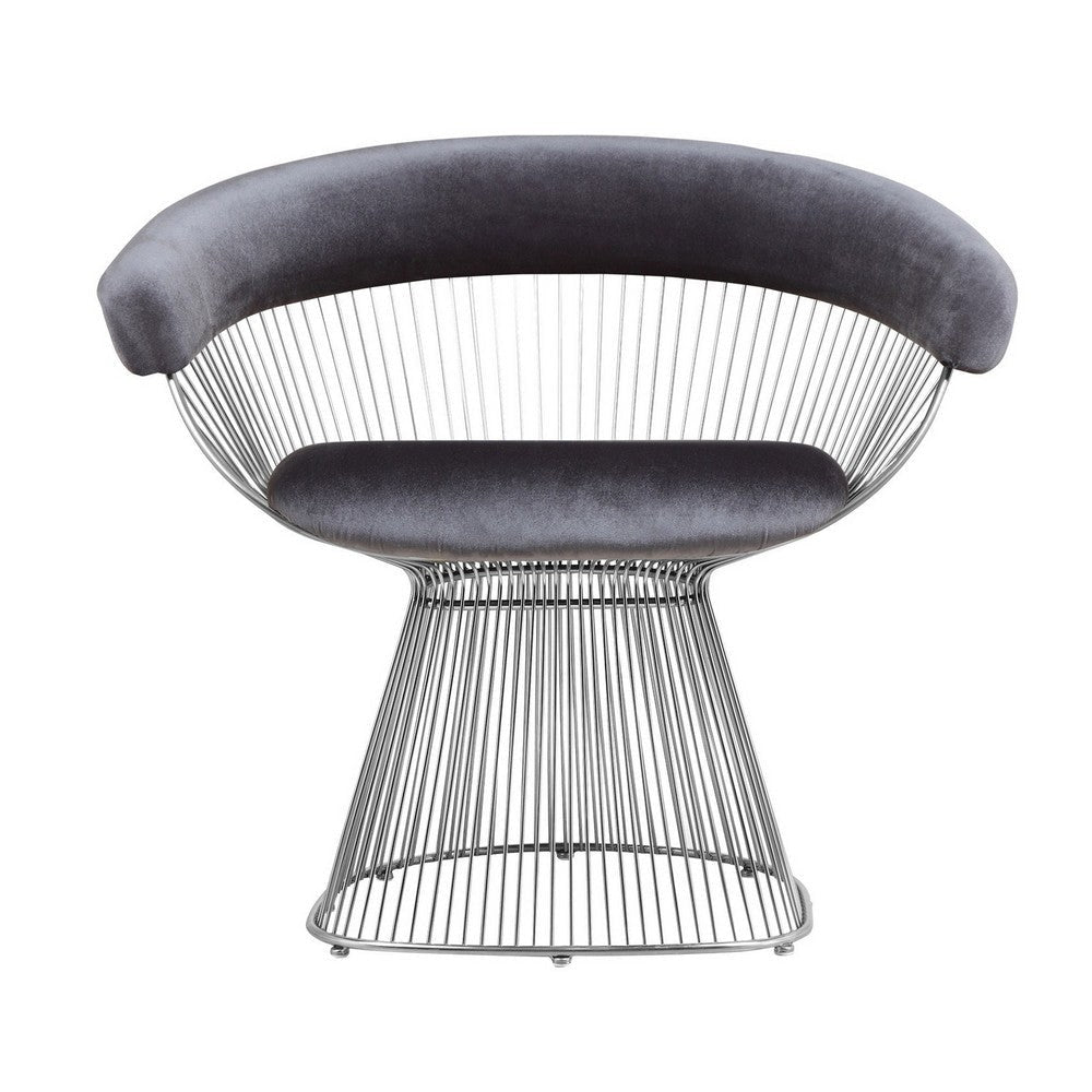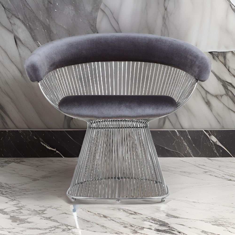 Mimi 27 Inch Accent Armchair, Plush Gray Velvet, Chrome Wire Cage Base By Casagear Home