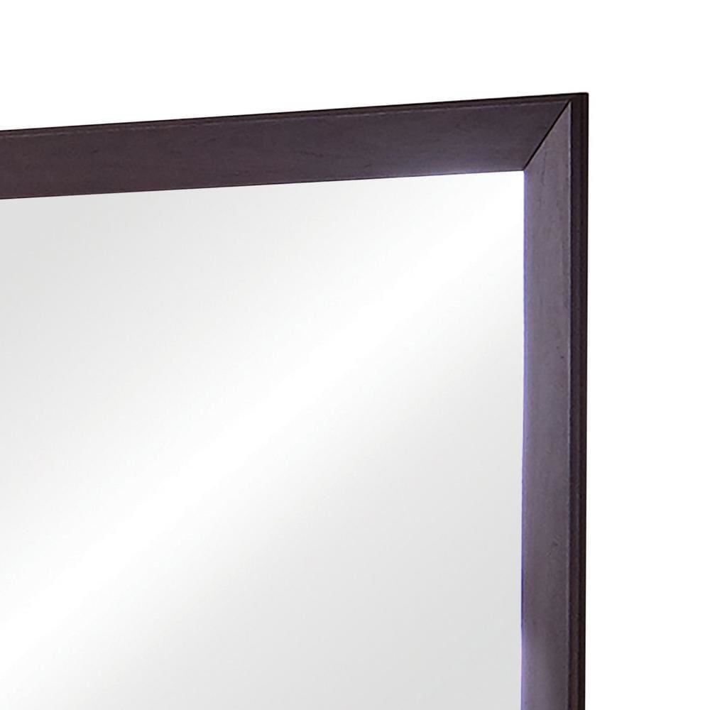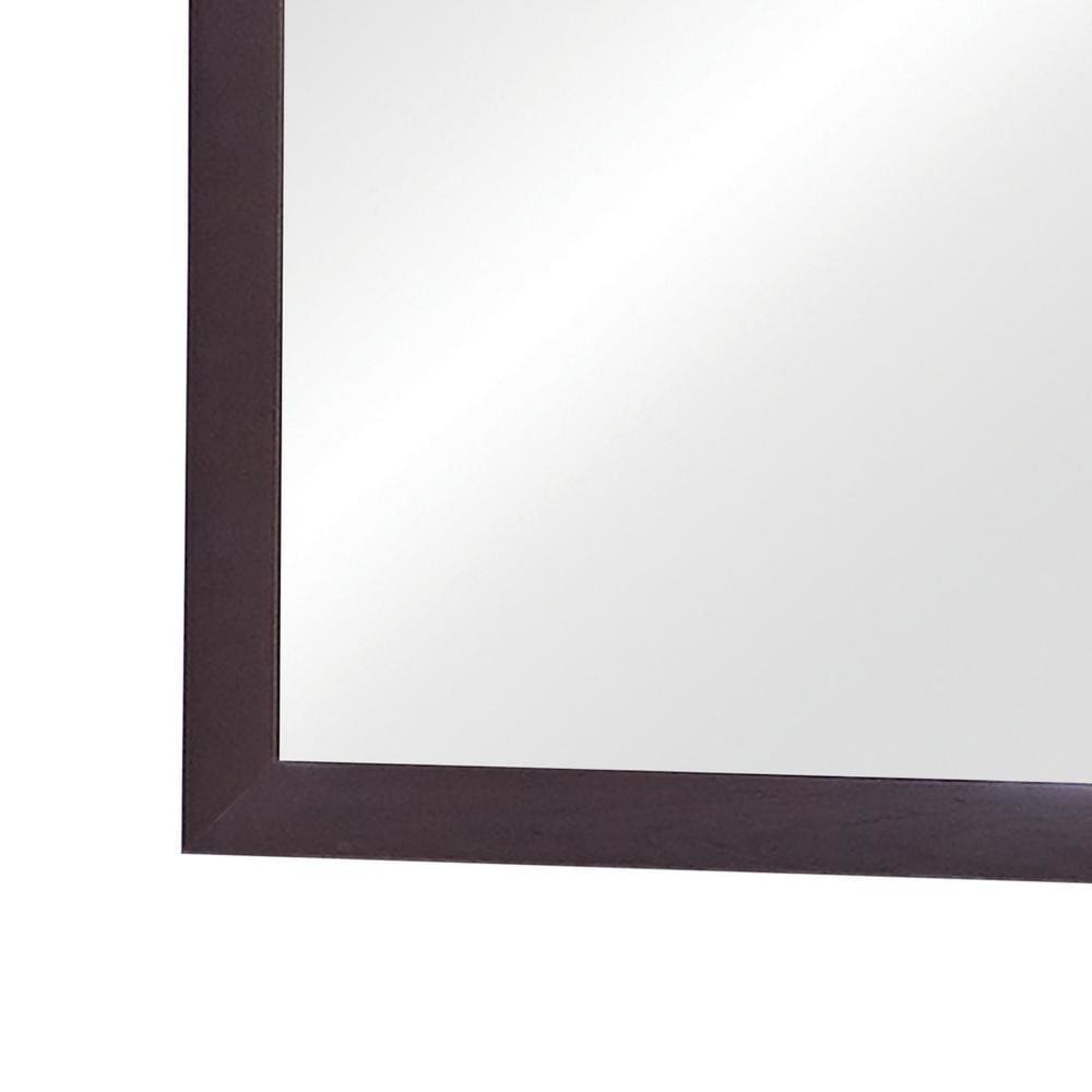 Adorn your dresser with the inclusion of this mirror. Rectangular shaped wooden frame embellished with espresso brown finish adds to the finesse of this entire piece. This piece proudly flaunts transitional style structure.