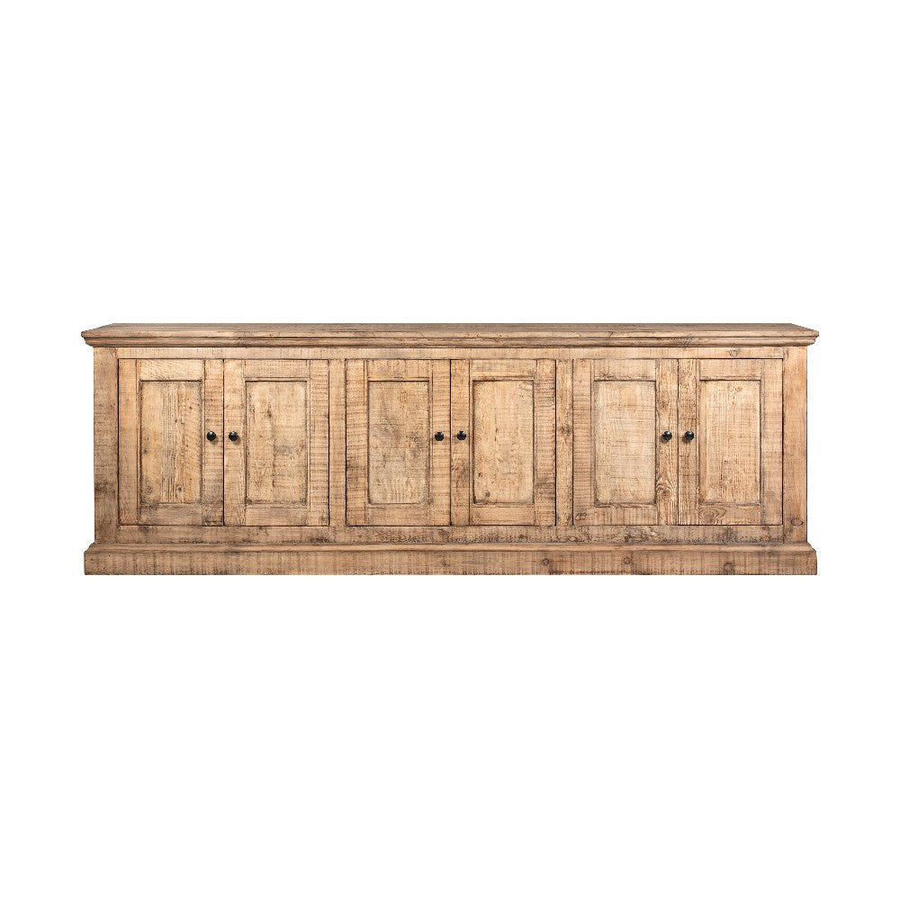 Miy Sideboard Buffet Cabinet, 6 Door, Natural Brown Pine Wood 106 Inch