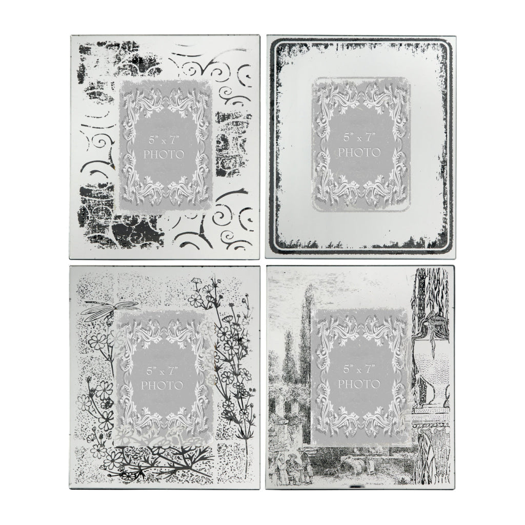 Photo Frames | Wood | Etched | Modern | Set of 4 | Silver