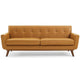 Gently sloping curves and plush removable seat cushions create a favorite living room couch. Whether lounging in solitude or entering a spirited discussion with friends, the Engage mid-century modern tufted top-grain leather upholstered living room lounge 90" sofa is a welcome presence in your home. Seven buttons create eye-catching appeal, adding depth to a sleek retro modern living room sofa that brings your sitting décor to center stage. Four splayed wood legs and frame supply a solid base to the comfortable quality leather couch for your living room, lounge room, office or other seating area. Sofa Weight Capacity: 552 lbs. Set Includes: One - Engage Living Room Lounge Sofa