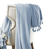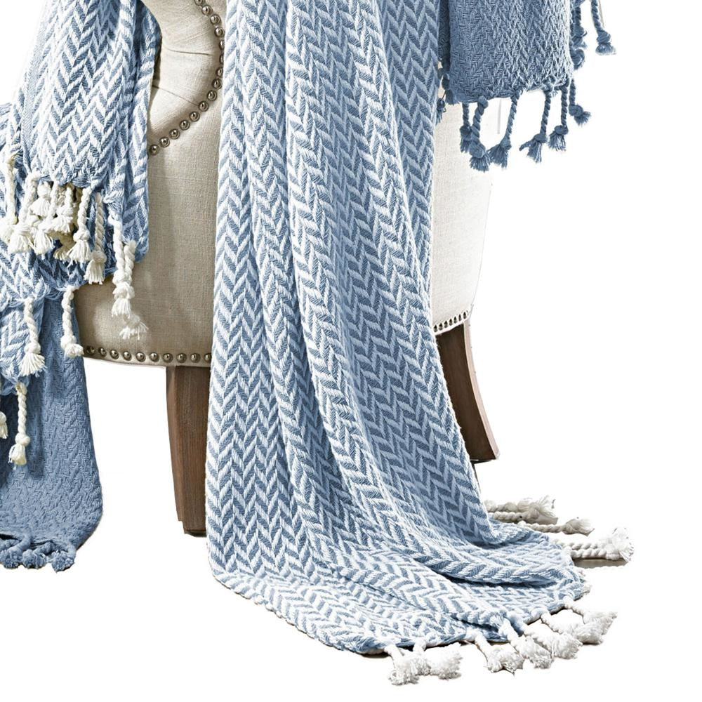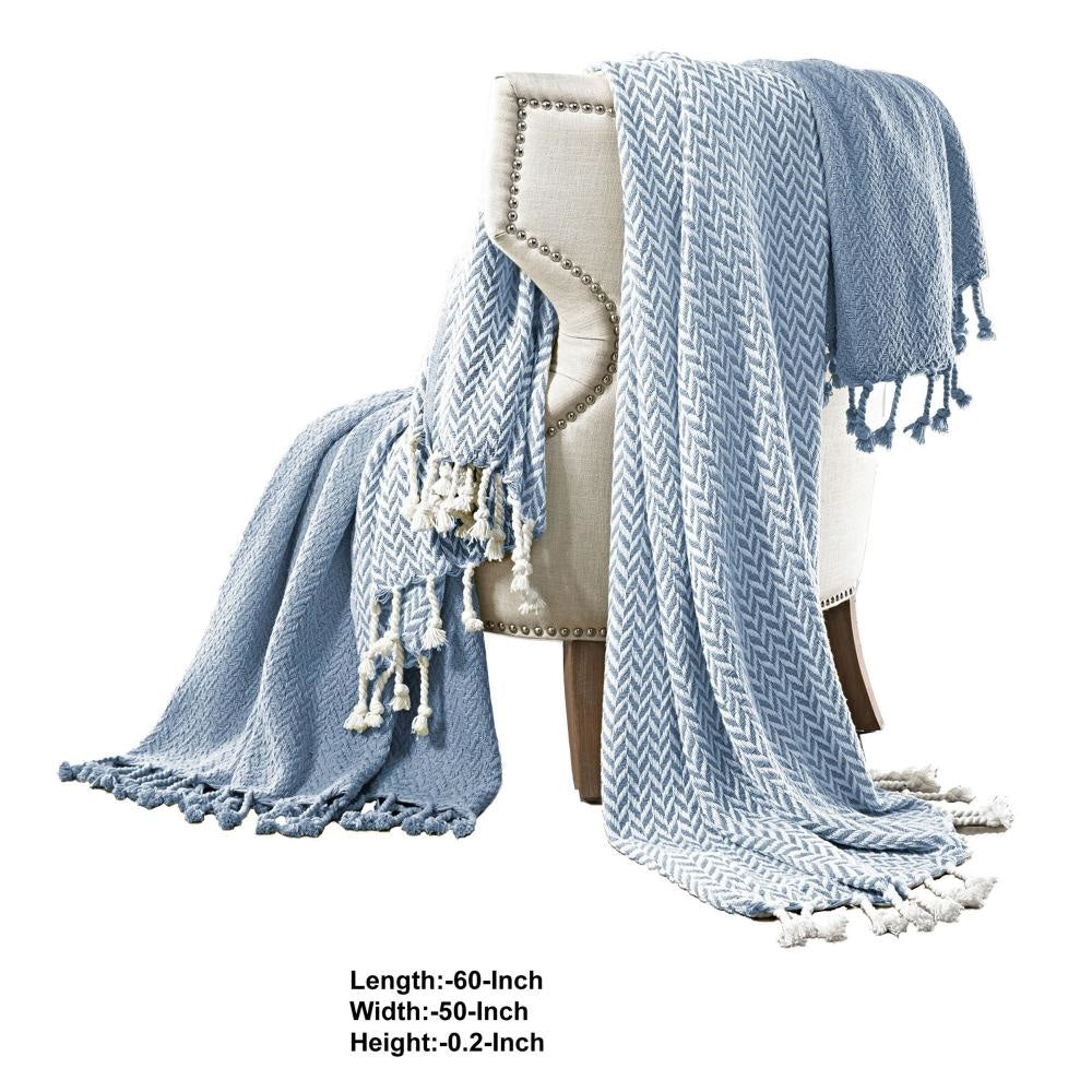 Description:Provide a comfortable addition to your chair and sofa with this set which includes 2 throw blankets. It features soft textured fabric to provide a warm and fuzzy experience. Crafted from good quality cotton, it is accented in the hues of blue and white. Provided with herringbone pattern, it will be a great companion of yours on windy nights. It will serve the best of its purpose and will also enhance the overall aesthetics of your place.