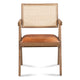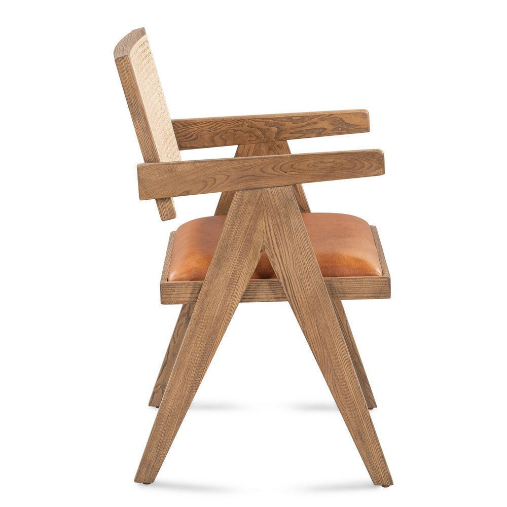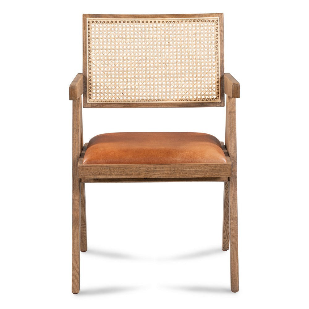 Description:Our Mse wood accent armchair is expertly designed to fit with various interior decor styles. Crafted with sturdy V-shaped wood legs, a rattan woven backrest, and a tan top grain leather upholstered seat, it provides lumbar support and lasting comfort. This charming accent piece is convenient for stylizing your living or dining space. Check out our Mse collection for matching options.