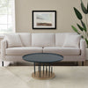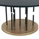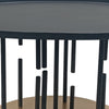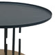 Embrace artistic expression within your interior decor theme when you bring this highlight to your space, a gorgeous contemporary coffee table from our Nica collection. It offers neutral tone elements and a minimalist, luxurious aesthetic to any interior theme. Crafted from solid iron in matte black and brass finish, it features a round traylike tabletop to keep your drinks, books, or electronics from falling off. It rests upon 14 support rods with a flat base for a dynamic look and great stability. Its simple, streamlined silhouette blends a pared-down, minimalist design with a gleaming finish, delivering an elegant look in any setting. Place it in your living room, sitting area, or any social space to display a lovely potted plant, candles, a vase, or beloved photos. Check out our Neci collection for matching set pieces.