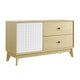 Elevate your space with the Nectar 43 Inch Accent Cabinet, a versatile small sideboard that complements any room in the home. Crafted with particleboard and featuring a wood grain laminate that lends organic aesthetics, this modern cabinet with two full-glide drawers merges durability with a contemporary vibe, making it perfect for the living area, office, or dining room. The eye-catching PVC door, adorned with a geometric square grid pattern, conceals a spacious cupboard for tucking away tableware, media essentials, homewares, and more. This cupboard cabinet is fitted with non-marking foot glides to protect your floors from scuffs and scratches. Whether serving as a buffet cabinet, a sideboard in your entryway, or as an organization and storage cabinet in your creative studio, Nectar redefines the essence of boho and contemporary decor. Assembly required. Tabletop Weight Capacity: 132 lbs., Weight Capacity of Each Drawer: 22 lbs. Set Includes: One - Nectar 43" Wood Grain Accent Cabinet