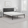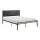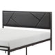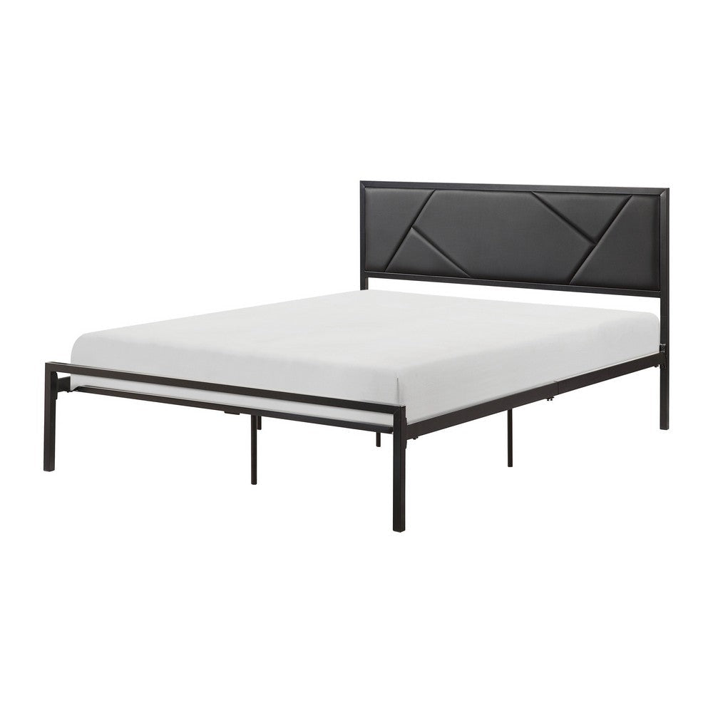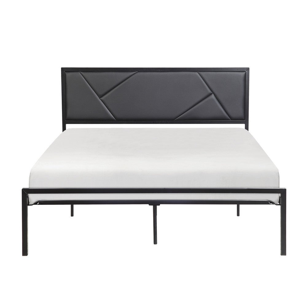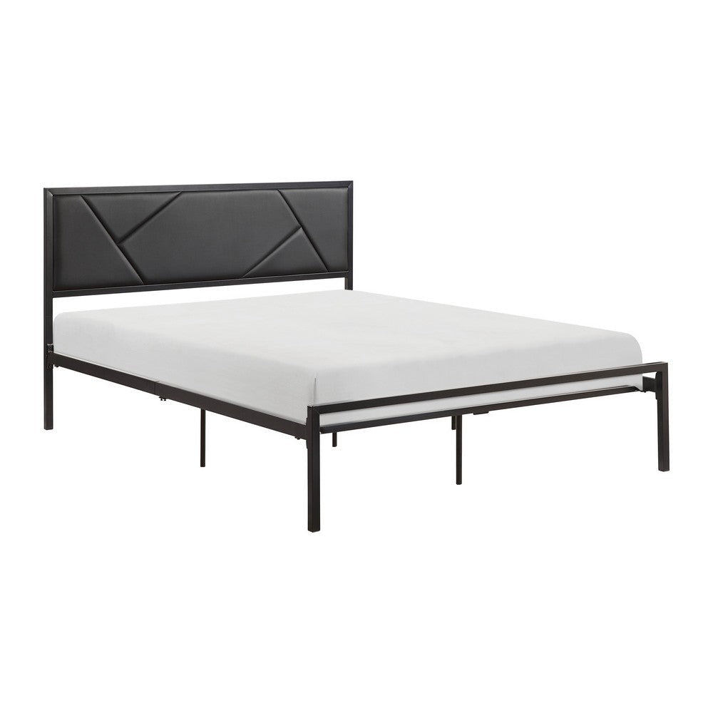 Elevate your bedroom into a haven of modern luxury with this twin size platform bed. Featuring a sturdy metal frame finished in a rich gray, this bed is exceptionally durable. The black faux leather headboard adds a touch of sophistication, while the geometric pattern detailing injects a touch of modern flair. Check out our Nick collection for more options.
