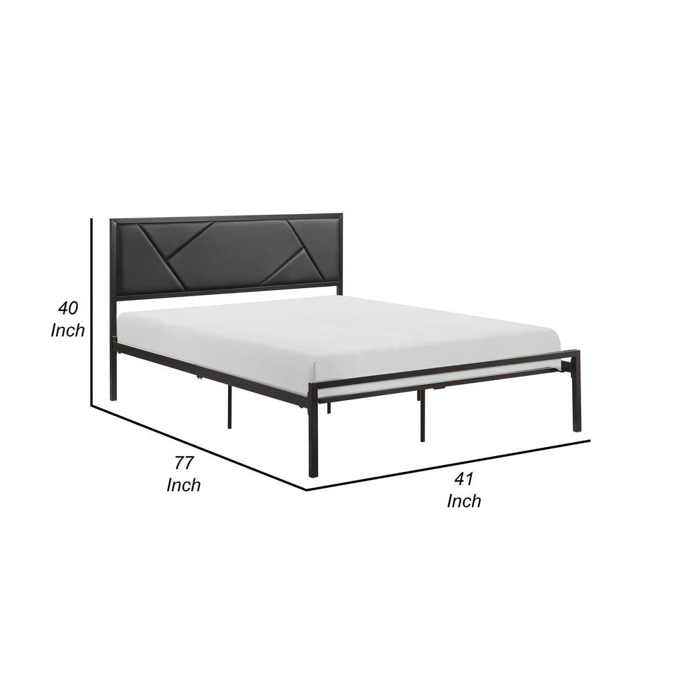 Nick Twin Size Platform Bed, Black Faux Leather Upholstered Headboard By Casagear Home