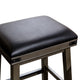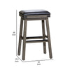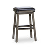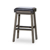 Nio 30 Inch Barstool, Saddle Black Bonded Leather Weathered Gray Solid Wood By Casagear Home
