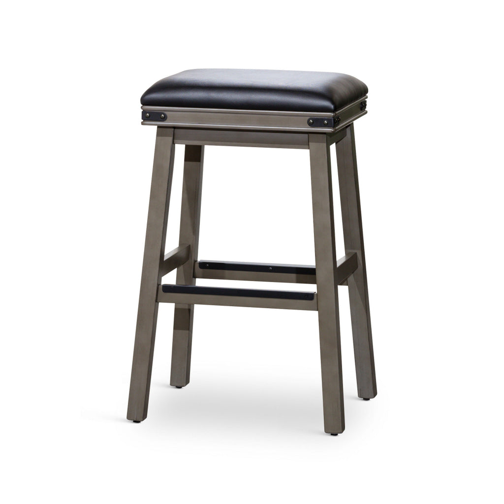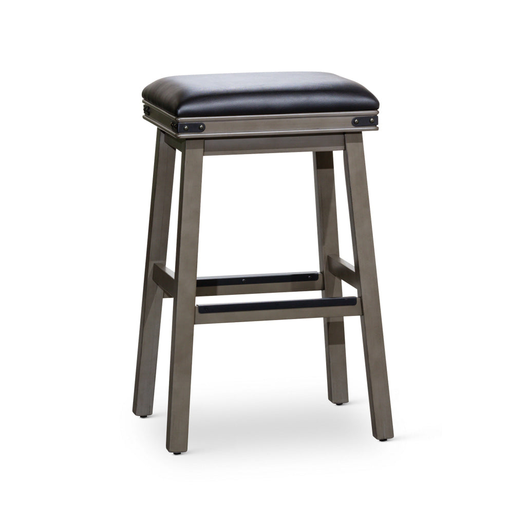 Crafted from solid hardwood with a weathered gray finish, our Nio barstool is a testament to both durability and timeless elegance. Adorned with black bonded leather upholstery, it exudes warmth and sophistication, seamlessly complementing any kitchen or dining area. The comfortable cushioned seat provides ample support and comfort. Check out our Nio collection for more color options.