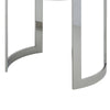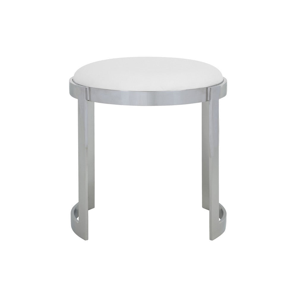 Crafted from a stainless steel frame in a luxurious brushed silver finish, this stool exudes luxury and durability. Its smooth white vegan faux leather upholstery adds a touch of richness while the cushioned round seat offers plush support, making it ideal for extended periods of sitting. Supported by wide curved legs, this stool is elegant and modern. Check out our Niyo collection for more.