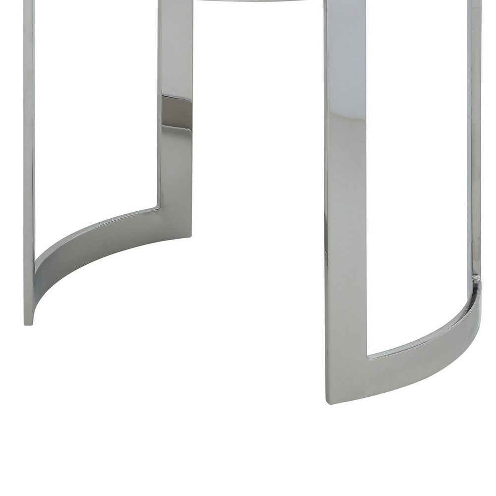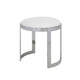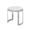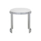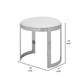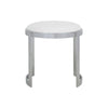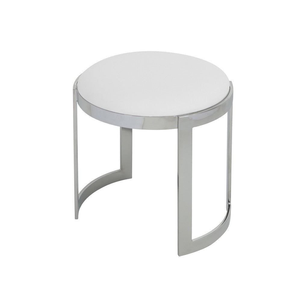 Niyo 19 Inch Accent Stool Ottoman, Round Seat, White Faux Leather, Silver By Casagear Home
