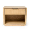 This nightstand is your key to a clutter-free bedside space. It features a sleek and functional design, a sturdy solid rubberwood frame, and a warm natural oak veneer finish. The single drawer is equipped with a soft-closing mechanism, and the open lower compartment provides storage space for books, magazines, or decorative items. Check out our Noe Celia collection for more options.
