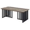 Nori 47 Inch Coffee Table, Distressed Brown Top, Black Metal Slatted Base By Casagear Home