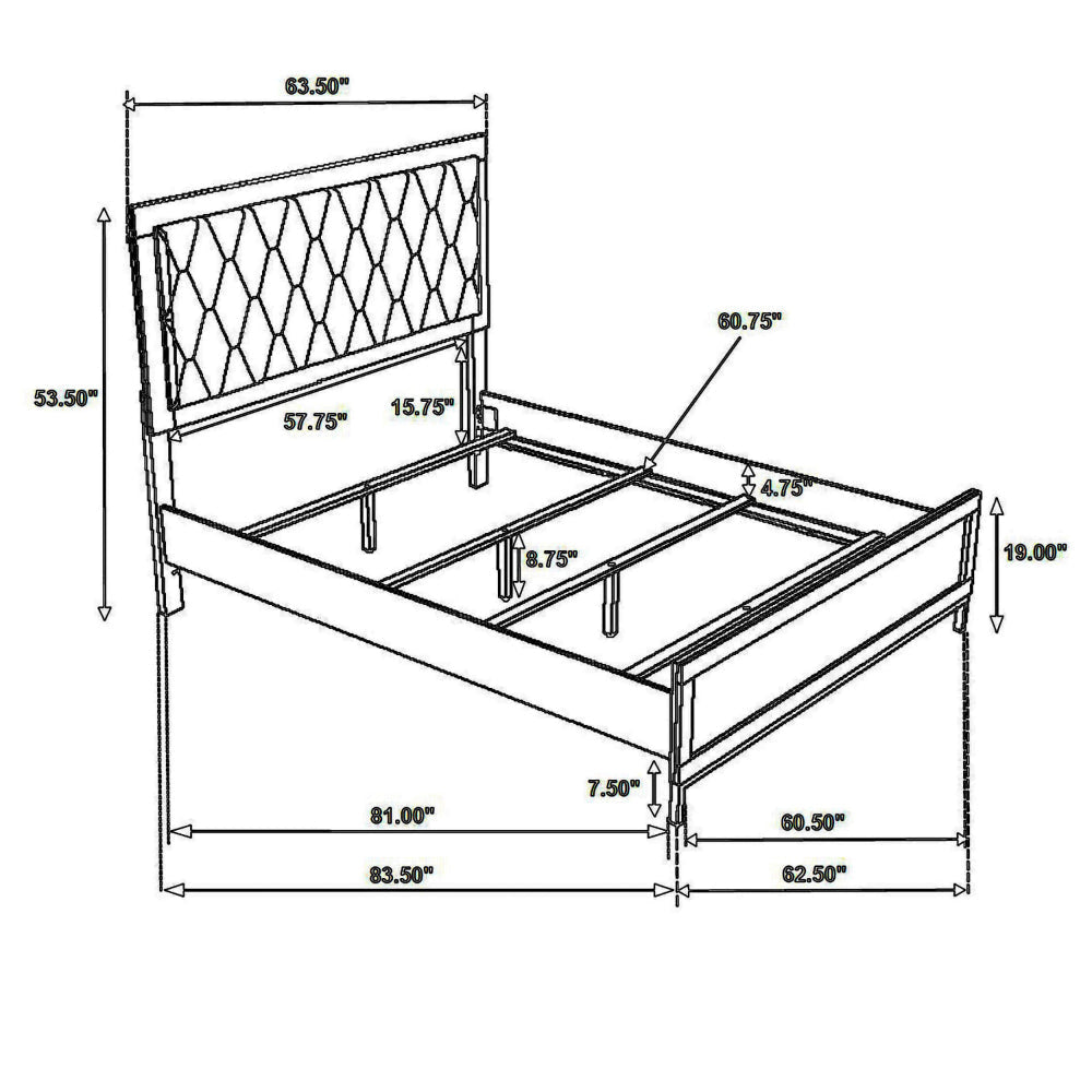 Noro Queen Size Bed, White Melamine, Hexagonal Tufted Upholstery