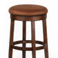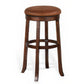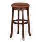 Odel Swivel Barstool Set of 2, Brown Faux Leather, Dark Mahogany Wood
