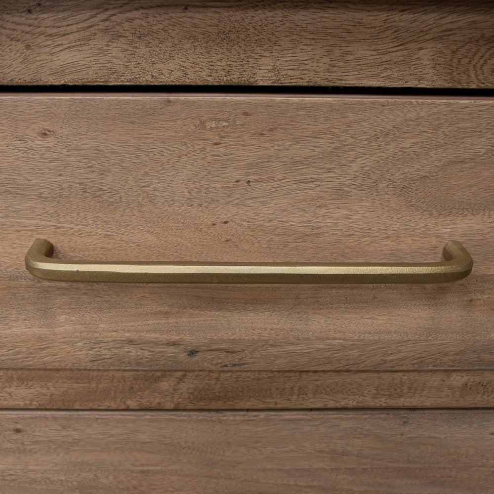 Okai Nightstand, 2 Drawers, Gold Handles, Farmhouse Light Brown Solid Wood By Casagear Home