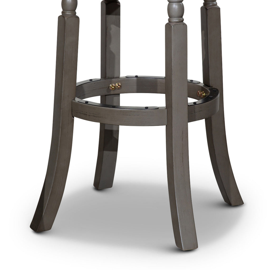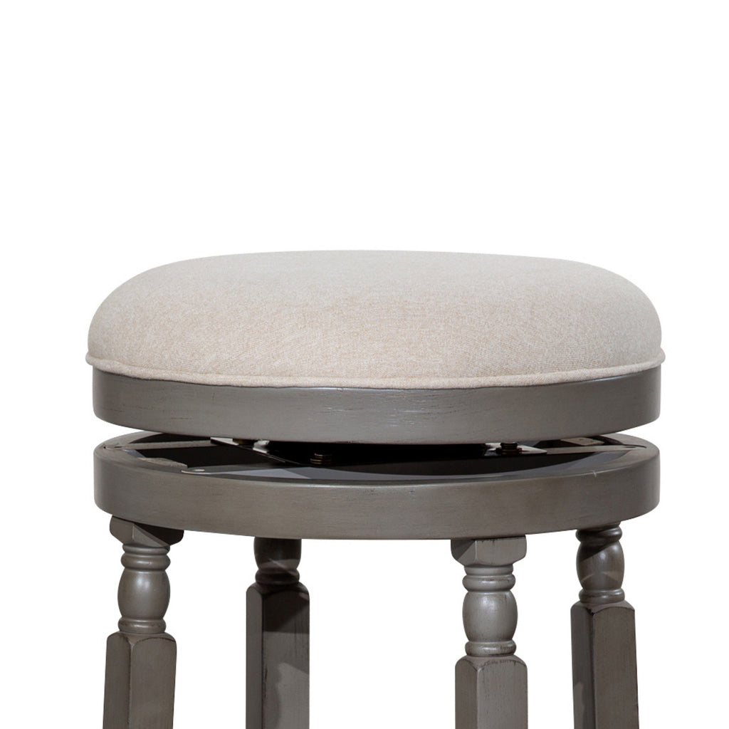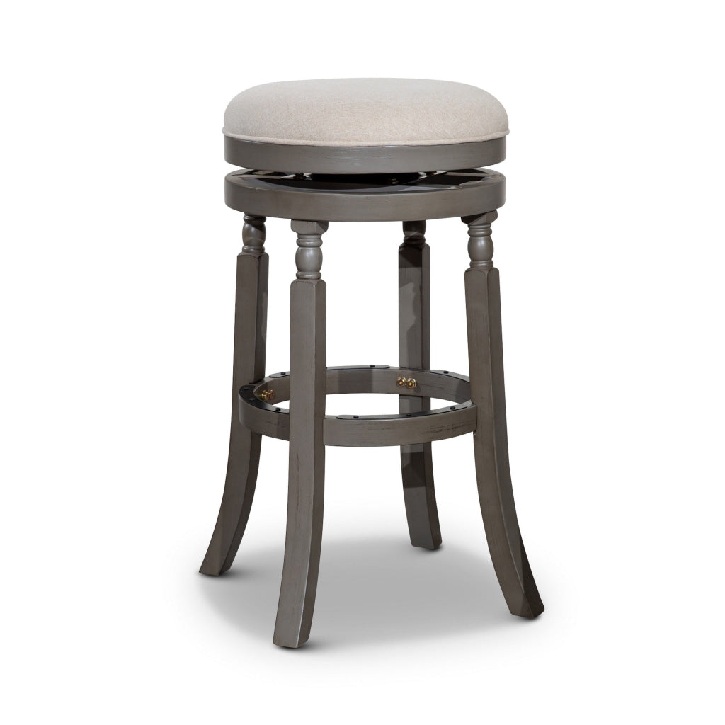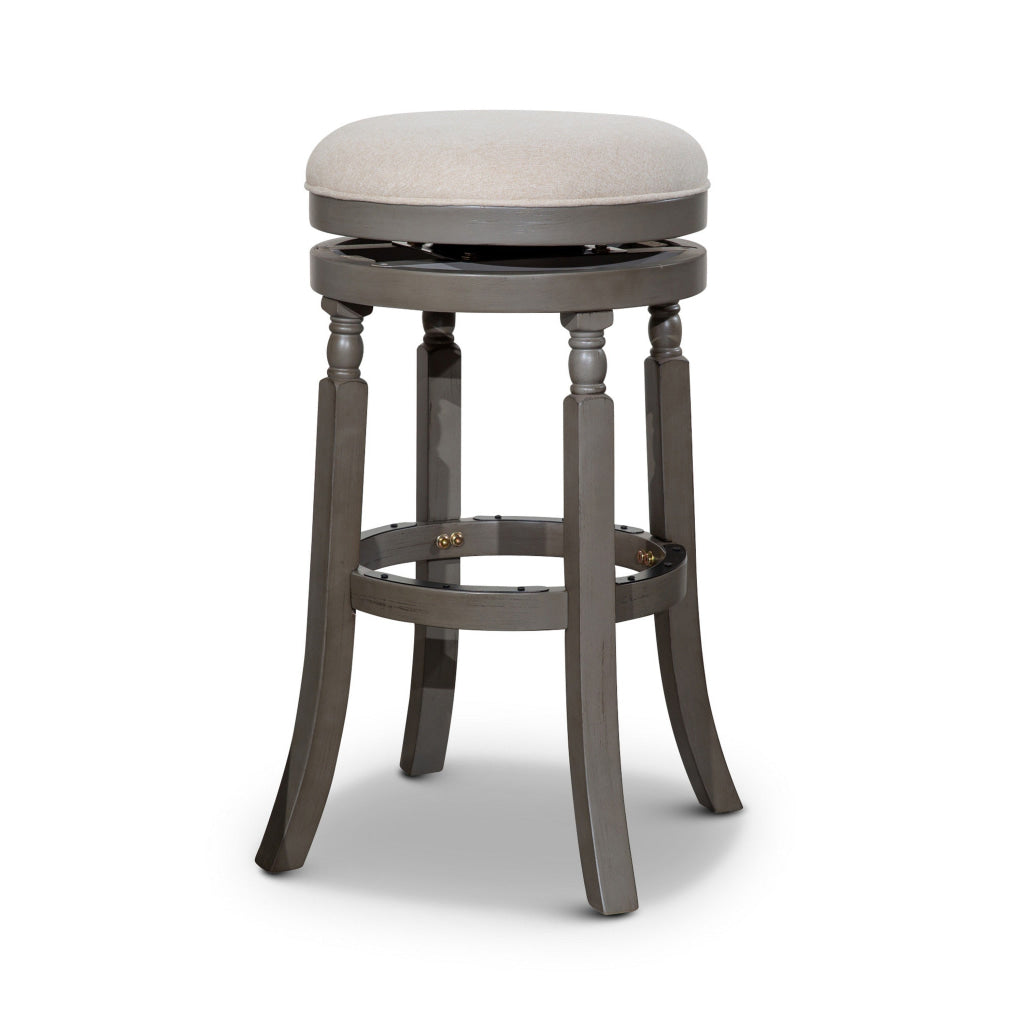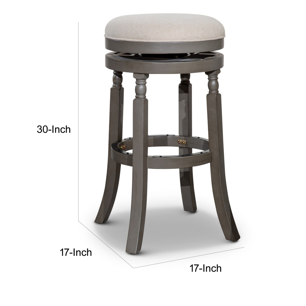 Opi 30 Inch Swivel Barstool, Round Cushioned Seat, Beige Fabric, Gray By Casagear Home