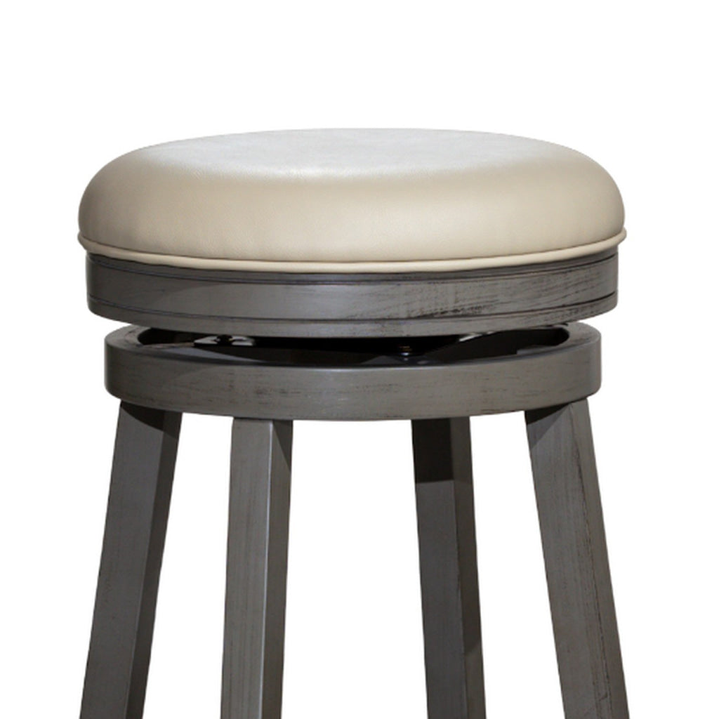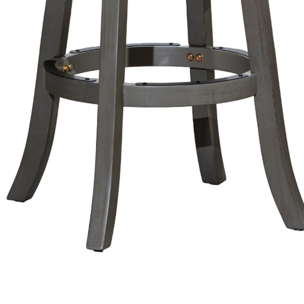 Opi 30 Inch Swivel Barstool, Round, Weathered Gray Faux Leather and Wood By Casagear Home