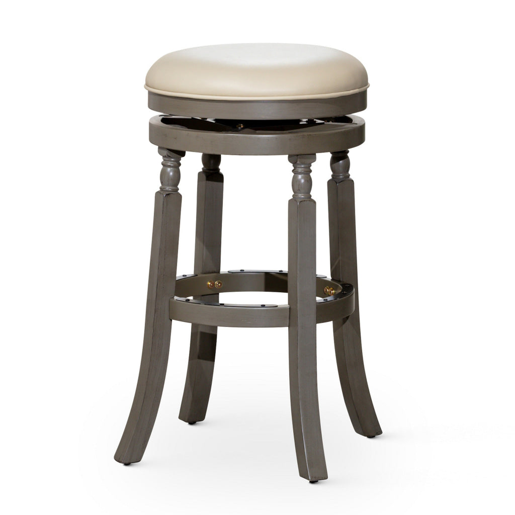 Opi 30 Inch Swivel Barstool, Weathered Gray, French Beige Bonded Leather By Casagear Home