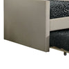 Bring home this beige twin daybed with a trundle, a versatile piece for any contemporary space. Its staircase-inspired headboard with vertical channel tufting creates an eye-catching look. Softly sloped track armrests add extra comfort for lounging, while the fully upholstered beige fabric frame brings warmth and texture. Explore our Oren collection by Casagear Home.
