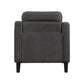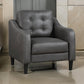 Sink into the epitome of relaxation with our Orry accent chair. Its plush dark gray microfiber upholstery comforts you, while high-density foam and pocket coils offer lasting support. Subtle design details like contoured arms and button tufting add a touch of transitional elegance, making it the perfect spot to unwind after a long day. Check out our Orry collection for more options.