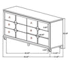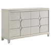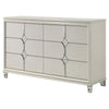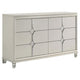 Ory Wide Dresser w 6 Drawers, Chrome Star Handle, Pearl Ivory Wood