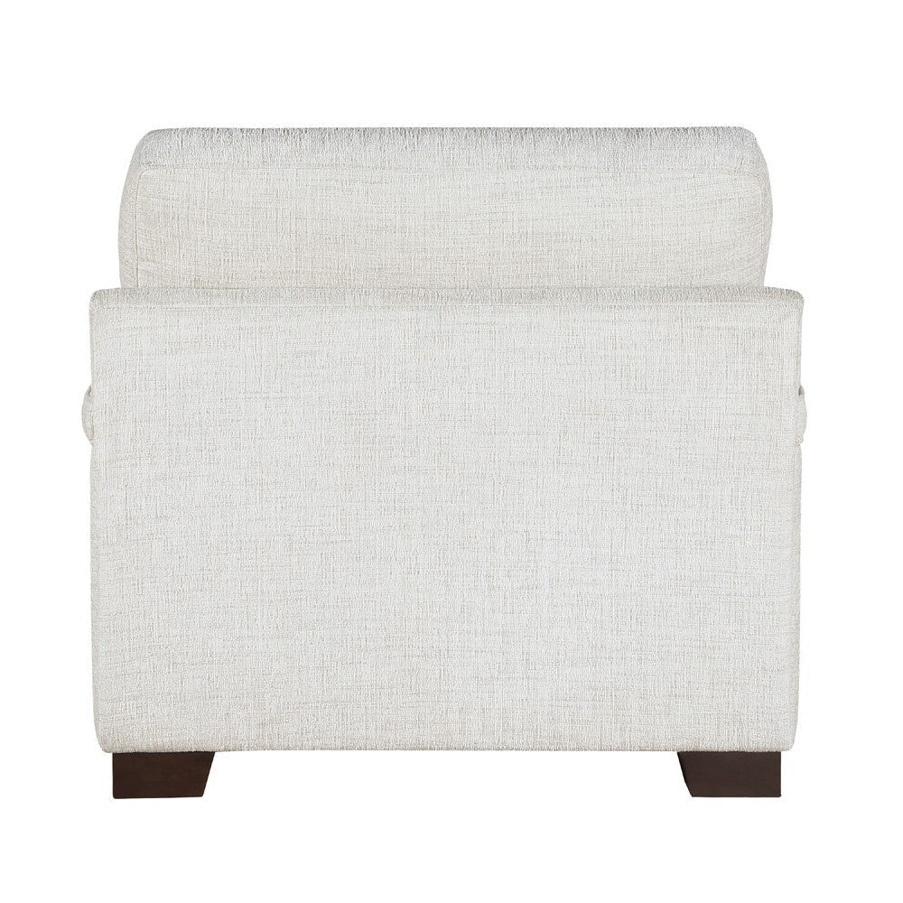 Bring understated sophistication and comfort to your living space with the Osy accent chair. Upholstered in ivory chenille, it features a clean design with wide proportions for modern sensibility. Its reversible cushions and removable covers offer easy care, while espresso brown wood legs provide a subtle contrast and sturdy support. Explore more in our Osy collection by Casagear Home.