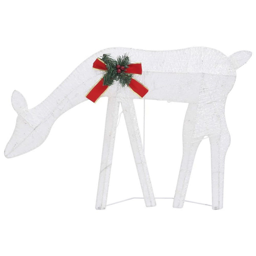 Add an enchanting touch to your holiday outdoor space with this Christmas reindeer family decoration set. This set features a charming family, each adorned with a festive red bow around its neck and glowing with 90 cool white LED lights. Made from quality fabric and steel, this set has a weather-resistant design. Eight unique lighting effects allow you to create a festive atmosphere.