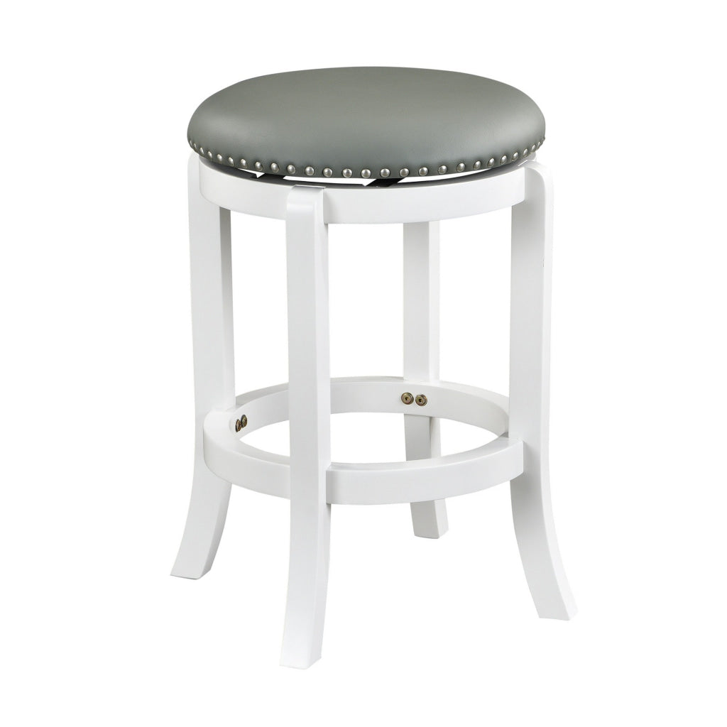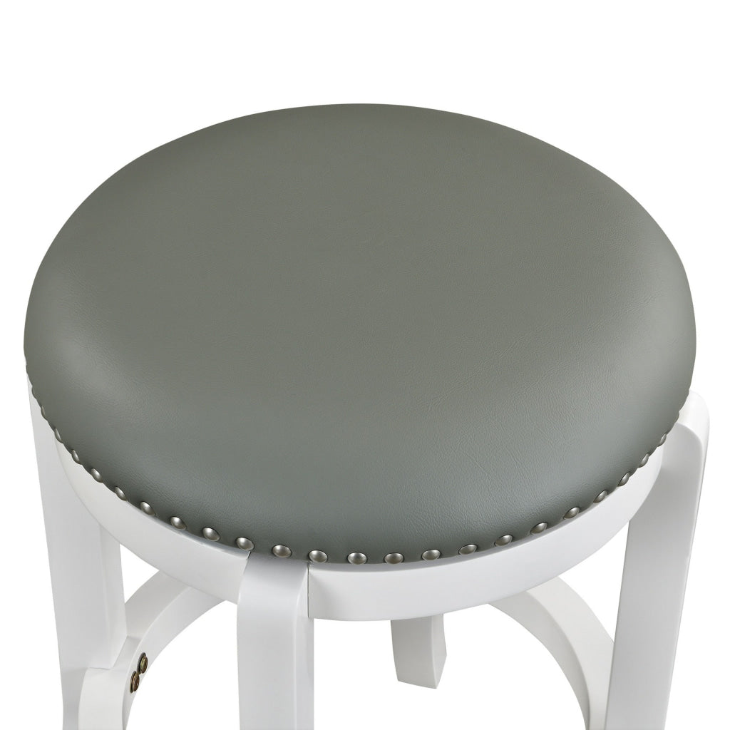 Ovi 25 Inch Backless Swivel Counter Stool, Gray Faux Leather, Nailhead Trim By Casagear Home