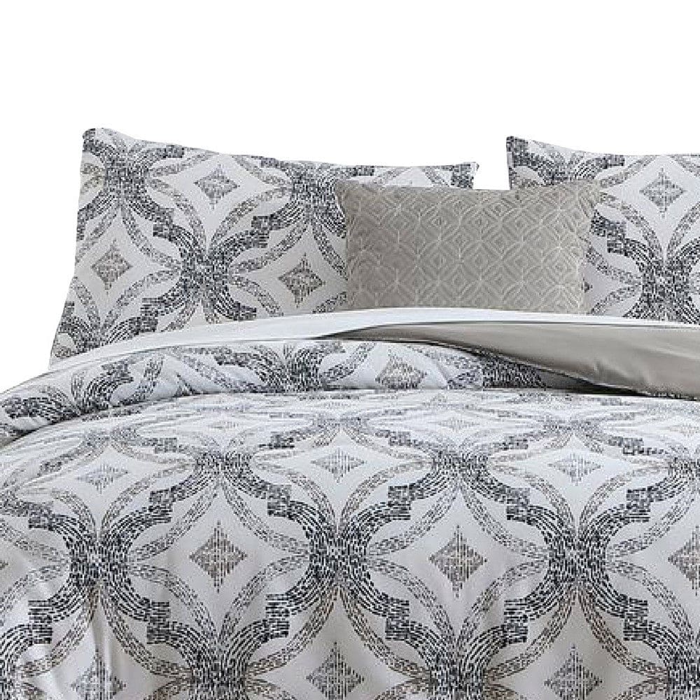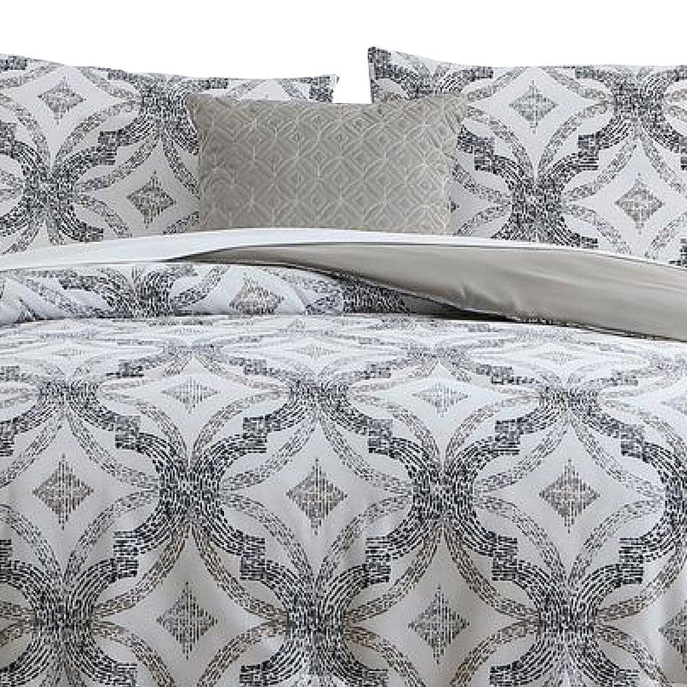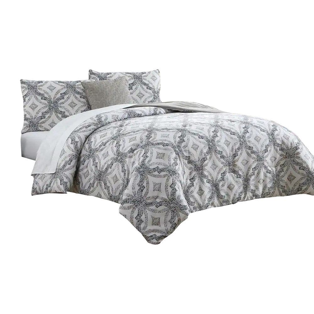 Owen Bed Set | 8 Piece King | Quatrefoil | White & Gray | Urban Port