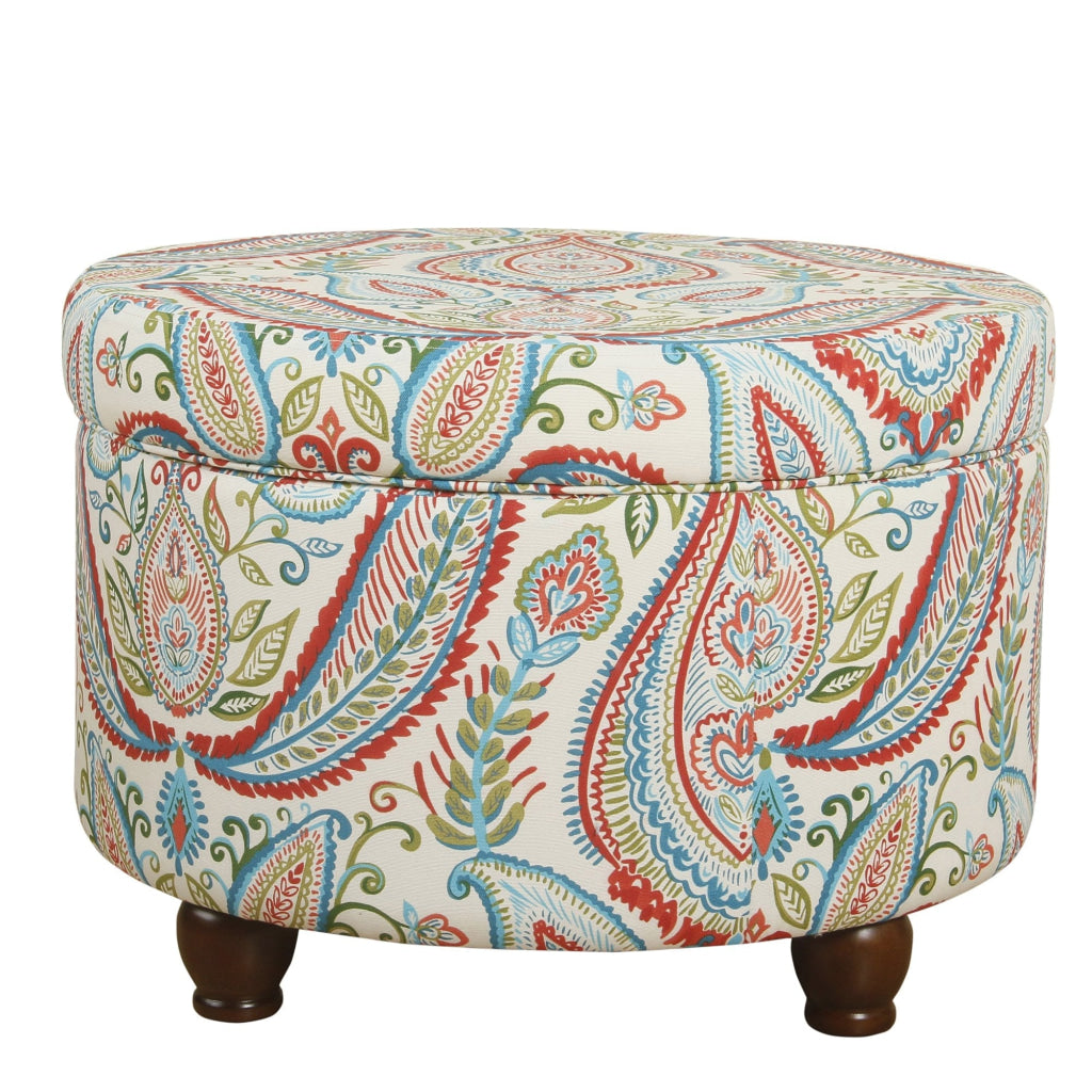 - This round shape ottoman features lift off storage and supported by sturdy bun feet.