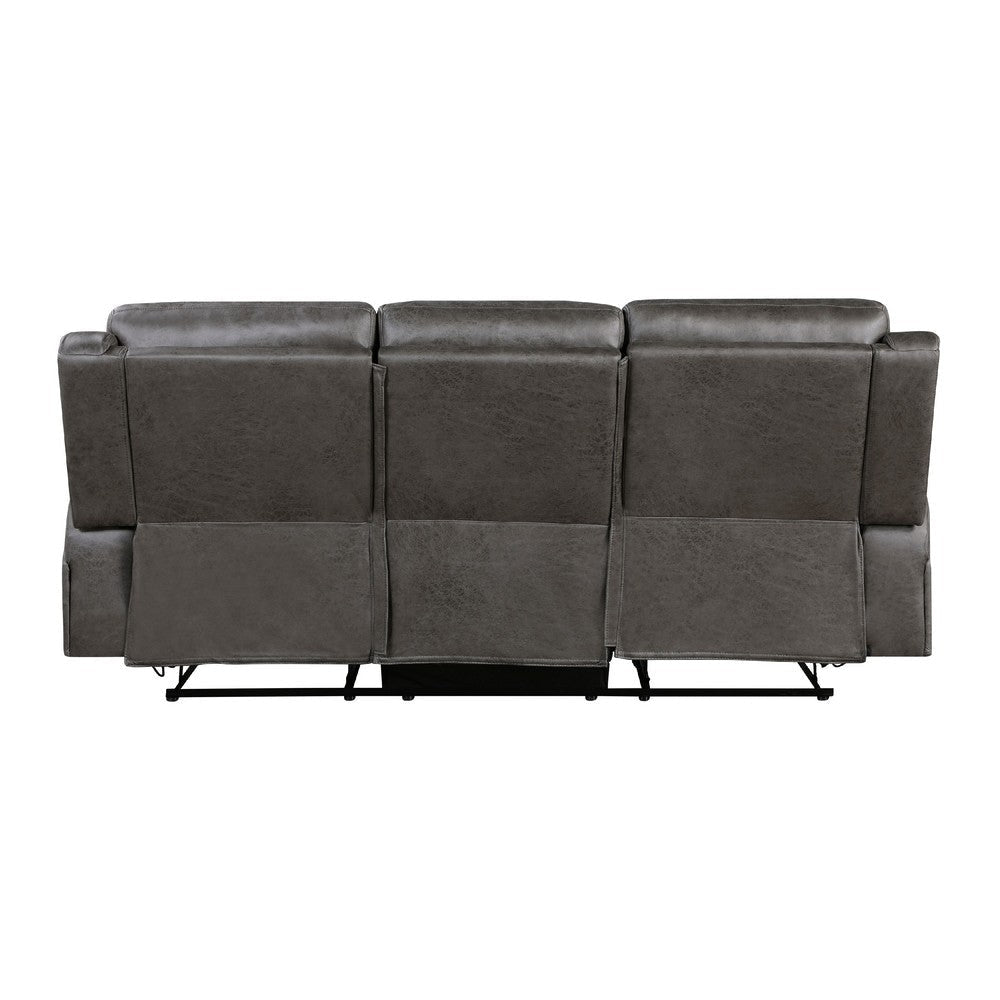 Relax in soothing style with the Patsy double reclining sofa. Upholstered in sleek gray polished microfiber, it blends contoured cushioning and smooth functionality for a truly relaxing experience. A side tab activates the manual recline, while the attached back, seat cushions give comfort, perfect for living rooms with a versatile design. Explore more in our Patsy collection by Casagear Home.