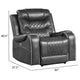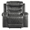 Lie back in your lounge or living room in style with this power reclining chair. The plush, gray faux leather upholstery cradles you in comfort, while the one-touch power control lets you adjust your position with ease. A built-in USB port keeps your devices charged, and diamond pattern stitching with nailhead trim adds a touch of class. Check out our Paul collection for more options.