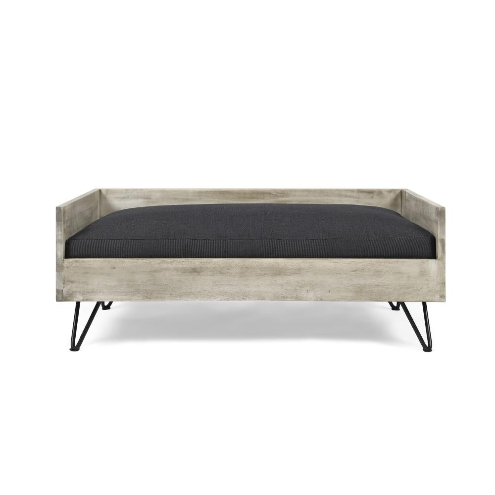 Spoil your furry friend with this cozy dog bed from our Paulo collection. This sturdy acacia wood frame features a sleek black finish and a plush, water-resistant cushion. The metal hairpin leg accents add a touch of modernity, making it a perfect addition to any home. Check out our Paulo collection for more options.