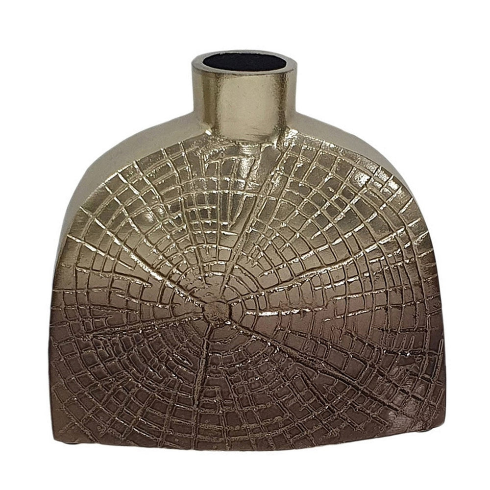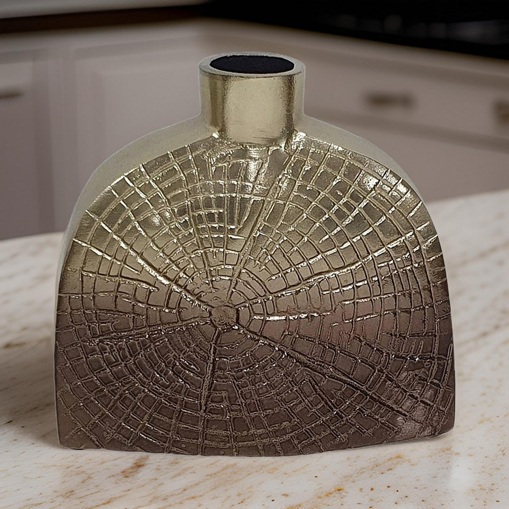Pece 8 Inch Aluminum Decorative Vase, Webbed Design, Square Base, Gold By Casagear Home