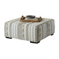 Phan Ottoman, Plush Ivory Chenille, Elegant Lined Pattern, 41 Inch