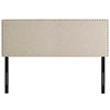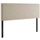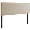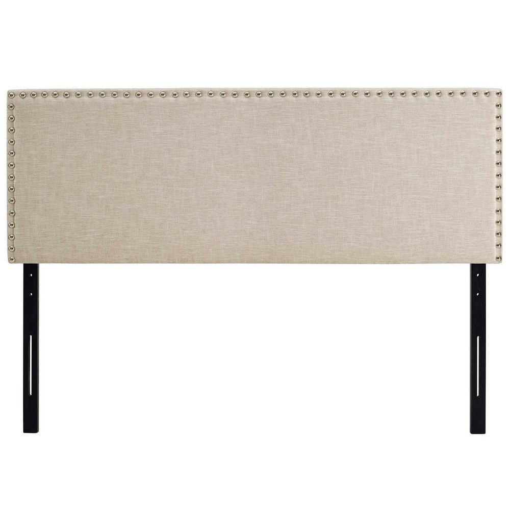 Description:Enhance your bedroom with the elegantly designed Phoebe Headboard in Fabric. Minimalist and chic, Phoebe transforms with sleek lines and a stunning nail button trim accented in silver. Phoebe features a solid wood frame, adjustable black coated metal legs, fine polyester upholstery, and dense foam padding for ultimate support. Fully Compatible with Loryn and Tessie Platform Bed Frames. Set Includes: One - Phoebe Queen Headboard