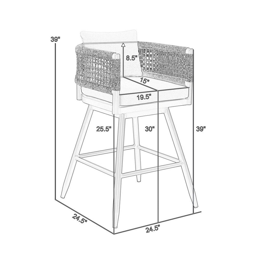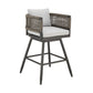 Piper 30 Inch Outdoor Swivel Barstool Chair, Rope Woven, Gray Cushions By Casagear Home