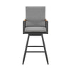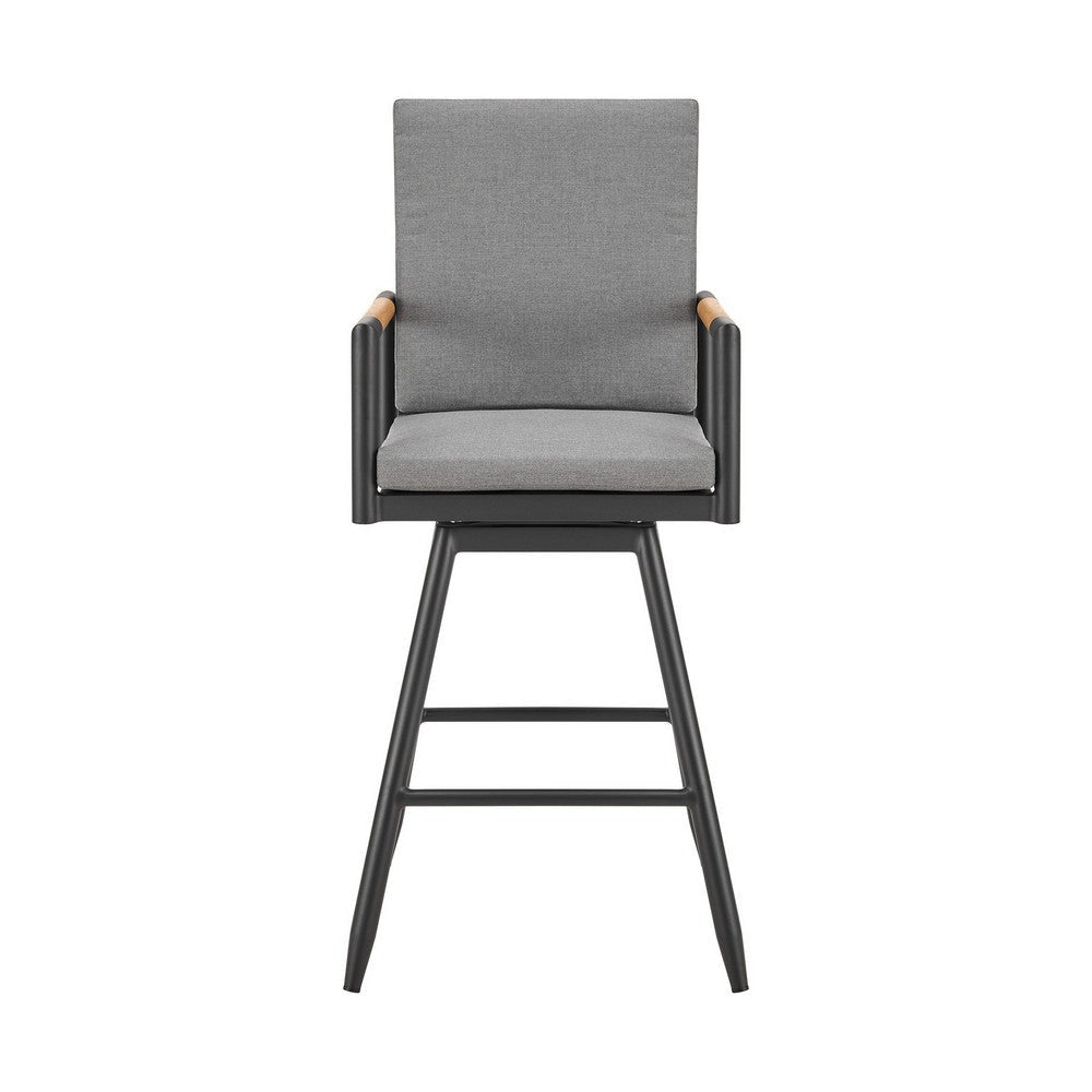 Razi 30 Inch Outdoor Swivel Barstool Chair, Black Aluminum, Gray Cushions By Casagear Home