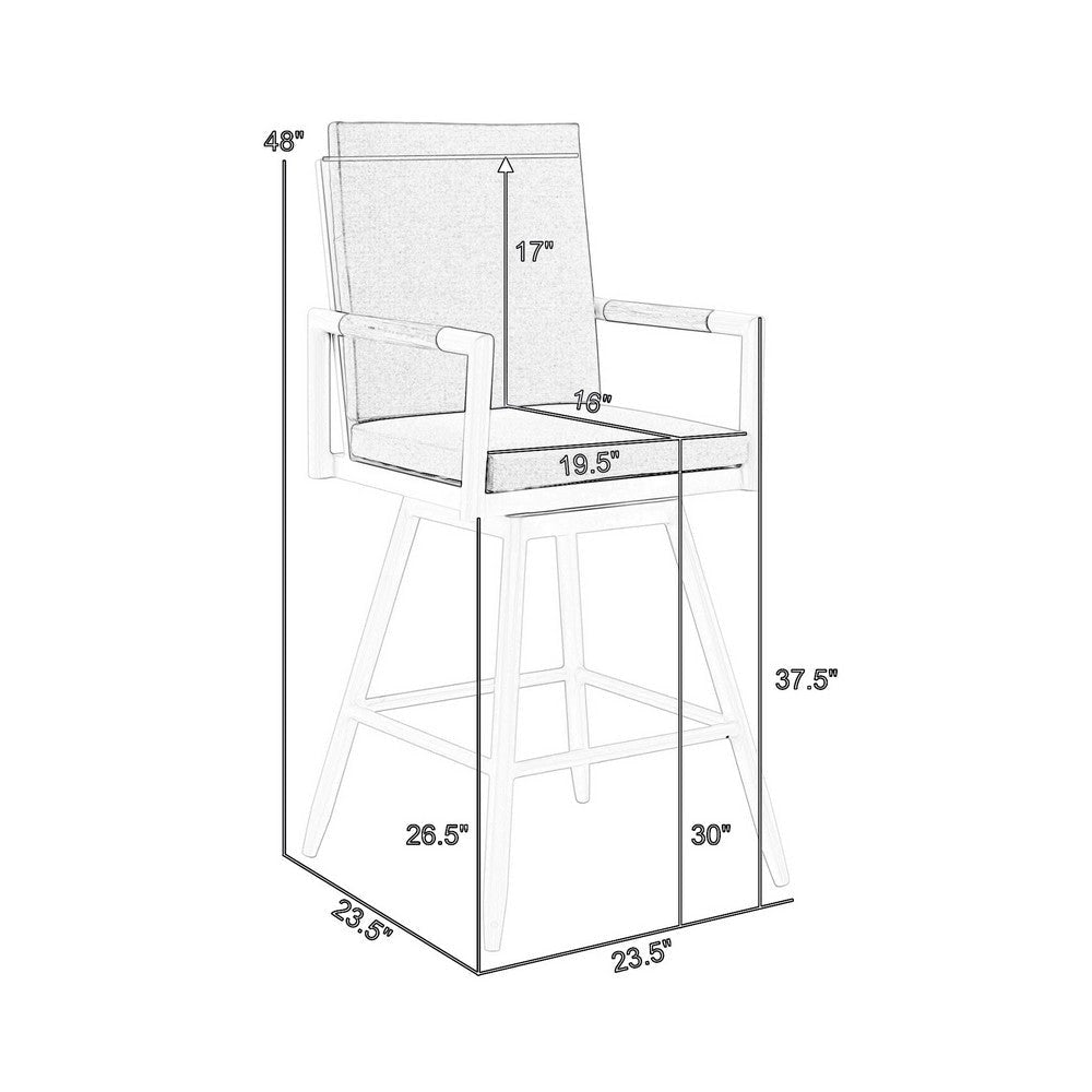 Description:Our Razi swivel barstool chair is meticulously crafted with classic white aluminum for a style that seamlessly integrates with modern outdoor or indoor styles. The gray upholstered cushions not only enhance comfort but add a touch of sophistication with open-style framed arms for support and a visually appealing silhouette. Check out our Razi collection for more options.