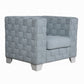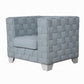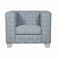 Transform your living area with this elegant chair, showcasing a striking box-shaped silhouette in light teal chenille and white finish. This chair's unique knitting process adds texture and depth, creating a bold and lively presence in any room. The pocket coil seating ensures a luxurious lounging experience, combining modern design with comfort. Check out our Reah collection for more options.