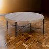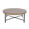 Reena Coffee Table, Light Brown Mahogany, Black Metal Frame, Round 39"