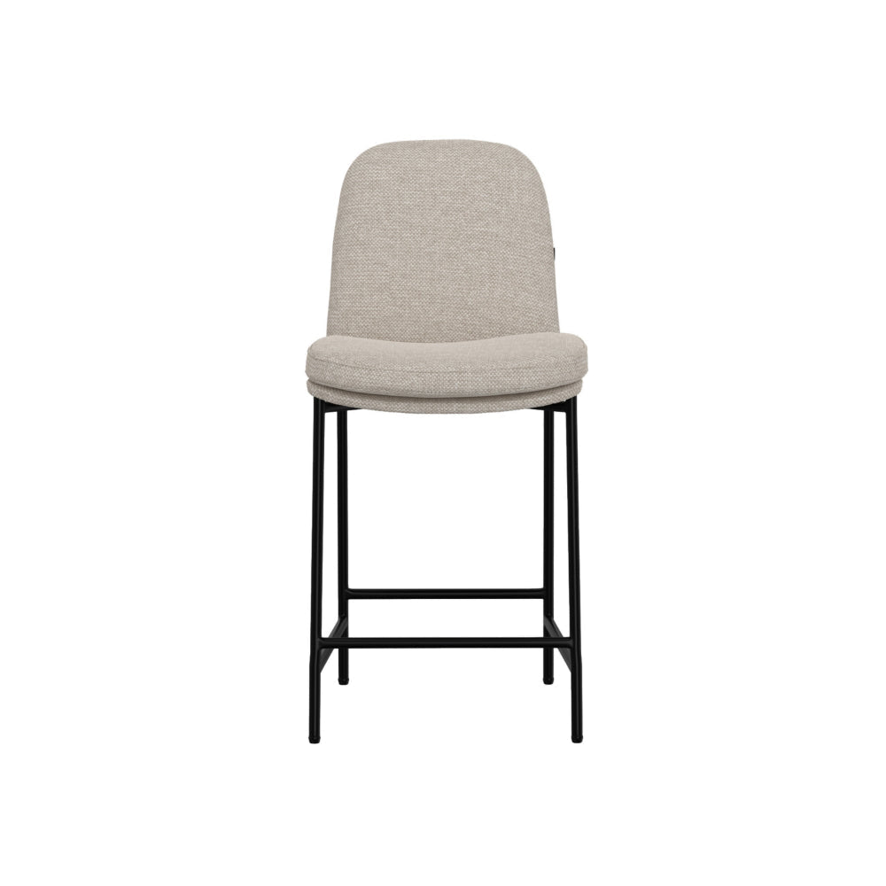 Discover the perfect blend of comfort and style with this counter height chair. It features a robust wooden frame and an iron base, all adorned in a sophisticated matte black finish. The upholstery, in a serene beige polyester, enhances its aesthetic appeal. Its rectangular shape and transitional design complement any modern kitchen island. Check out our Reeve collection for more like this.